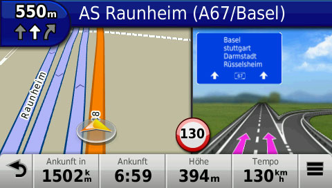 Am besten gefällt uns die Kartendarstellung bei MEDION und TomTom. Garmin zeigt weniger Details in der Karte an, die jedoch für eine Orientierung wichtig sein können z.B. Waldgebiete. Die Kartenansicht bei Arival wirkt weniger modern, vielleicht auch weil die sog. Real View von Autobahn- oder Bundesstr.-Kreuzungen nicht möglich ist. Die Real View erzeugt ein möglichst realitätsnahes Bild der Spurverhältnisse an komplizierten Autobahnabschnitten und erleichtert die Navigation erheblich, vor allem für Menschen, die Probleme haben Karten zu interpretieren. Das Mio zeigt besonders häufig und gut gemachte Real-View-Ansichten, allerdings konnten wir keine gute Note bei der Kartenansicht vergeben, da auf eine 2D-Karte komplett verzichtet wurde. Leider lässt sich auch die 2D-Karte des NavGear nicht in Nordrichtung fixieren und bei Garmin und Arival sitzt die Position während der 2D-Navigation immer an einem festen Punkt auf dem Display. Das hat den Nachteil, dass man bei einer Fahrt nach Süden zwischen Position und Bildschirmrad in Fahrtrichtung unter Umständen keine Voraussicht mehr hat. MEDION und TomTom hingegen bieten hier eine optimale Ausrichtung der Positionsanzeige je nach Modus (nordweisend, Fahrtrichtung).