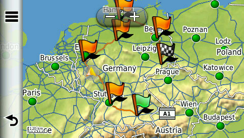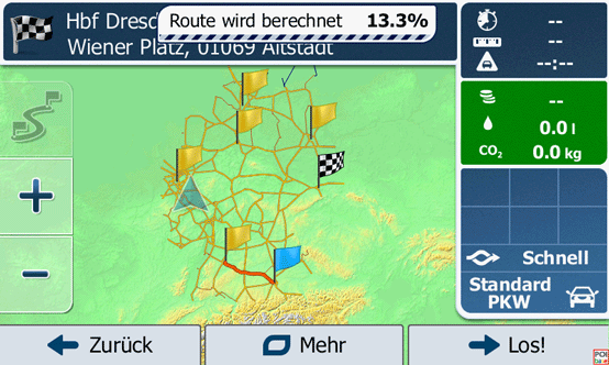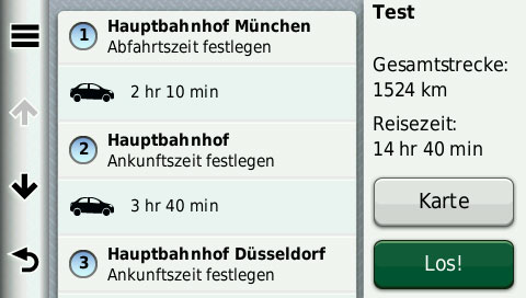 | Routenplanung | Route speichern![]() | Route speichern Routen- optimierung ![]() | Route speichern Routen- optimierung ![]() | ![]() | Route speichern Routen- optimierung ![]() | max. 3 Zwischenziele![]() |