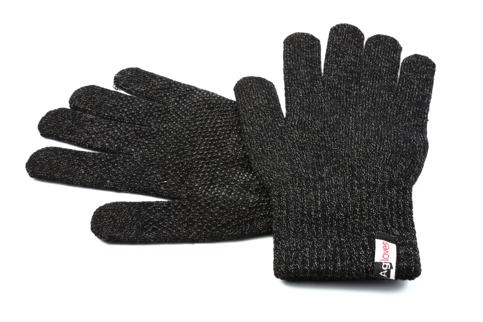 Der Agloves Grip Touch nimmt unter den getesteten Strickhandschuhen eine Sonderstellung ein. Seine Innenflächen sind, mit Ausnahme der Fingerspitzen, mit kleinen PVC Punkten besetzt, welche die Griffigkeit deutlich erhöhen. Die glatten Oberflächen mobiler Geräte sind mit normalen Strickhandschuhen oft nicht leicht zu fassen und die Geräte rutschen leichter aus der Hand, der Agloves Grip Touch macht hier eine positive Ausnahme. Die PVC-Noppen schützen die Innenflächen etwas gegenüber Abrieb, für schwere Arbeiten ist der Handschuh dennoch nicht gedacht.