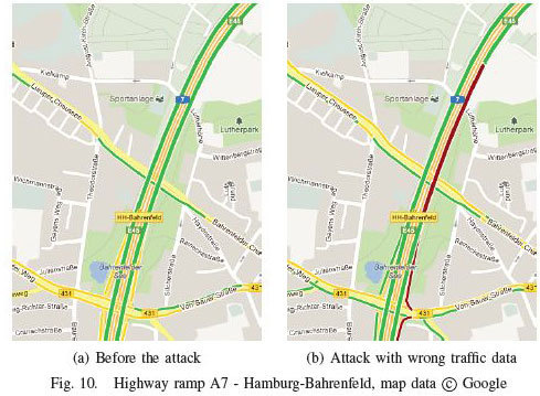 Forschern der Technischen Universität Hamburg ist es gelungen, die Echtzeit Verkehrsdienste von Google und Waze zu hacken und falsche Staumeldungen anzeigen zu lassen.
