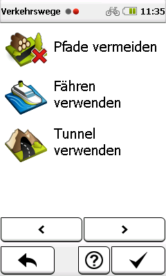 Verglichen mit dem Routing seines Vorgängers scheint es beim Falk Lux 32 im Menü nur unscheinbare Änderungen zu geben. Die Kategorien wurden weitestgehend beibehalten und etwas umbenannt. Statt „Einfach“ heißt es nun „Flach“, aus „Sportlich“ wurde „bergig“. Das trifft die Anforderungen besser. Hinzu gekommen ist eine Option, „Pfade“ zu verwenden oder zu vermeiden. Damit werden jetzt auch kleinste Wege, die auf der Karte vorhanden waren, ins Routing mit einbezogen, was insbesondere dem Mountainbiking gut tun dürfte.
