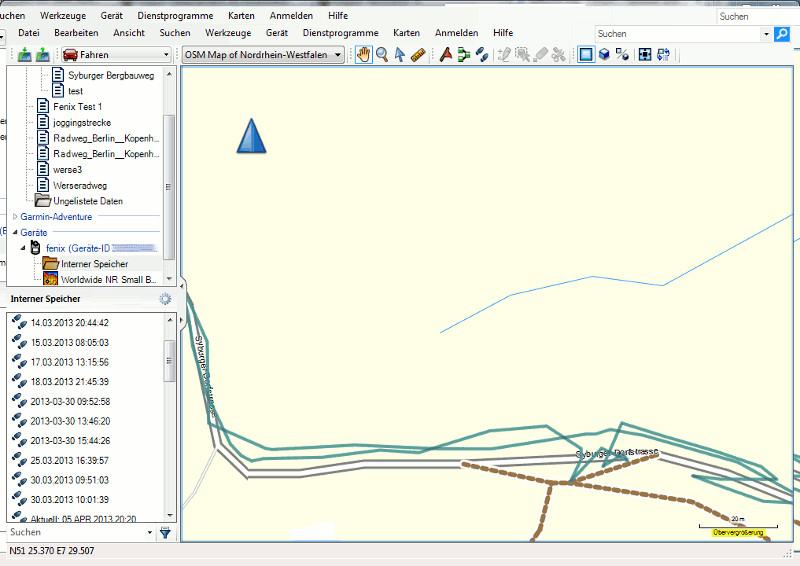 Als am einfachsten erweist es sich, Geocaches über die Website der beiden genannten Anbieter direkt in den Gerätespeicher herunterzuladen. Geocaches werden auf der Fenix im GPX-Format abgelegt und lassen sich bei PC-Verbindung über ein geeignetes Programm wie z.B. Basemap direkt verwalten. Wie bereits an anderer Stelle thematisiert, sollte man angesichts begrenzter Systemressourcen den Aufbau großer Geocache-Bestände auf der Fenix vermeiden.