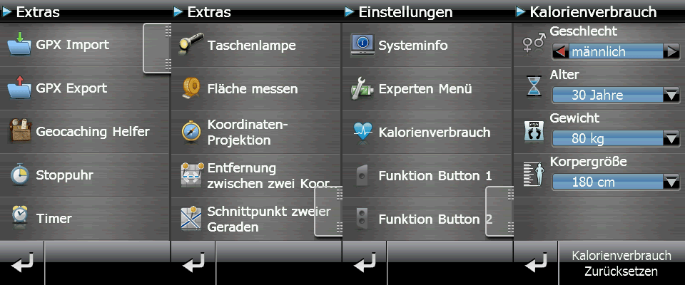 Das Gerät wird zur Zeit mit der Software GoPal Outdoor 3.0.2726 ausgeliefert. Die Software 3.xx gibt es seit einigen Tagen auch als Update für das Vorgängermodell. Allerdings verfügt die Version für das S3867 über Funktionen, die nicht Bestandteil des Updates sind. Wir haben einige der neuen Funktionen in Screenshots zusammengefasst:
