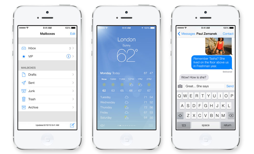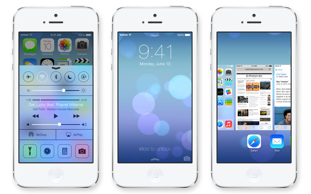 Apple selbst bezeichnet das Update als bedeutendstes seit dem Original-iPhone und tatsächlich könnte man auf den ersten Blick denken man hat ein neues Betriebssystem vor sich. Das komplett neu gestaltete iOS 7 mit neuer Farbpalette und einer klaren Typografie, lässt eigentlich nur noch durch seine typischen App-Symbole auf dem Homescreen ein Apple Gerät erahnen. Die neue Benutzeroberfläche soll die Geräte größer erscheinen lassen, indem alles so designed wurde, dass der Bildschirm immer optimal ausgenutzt wird.