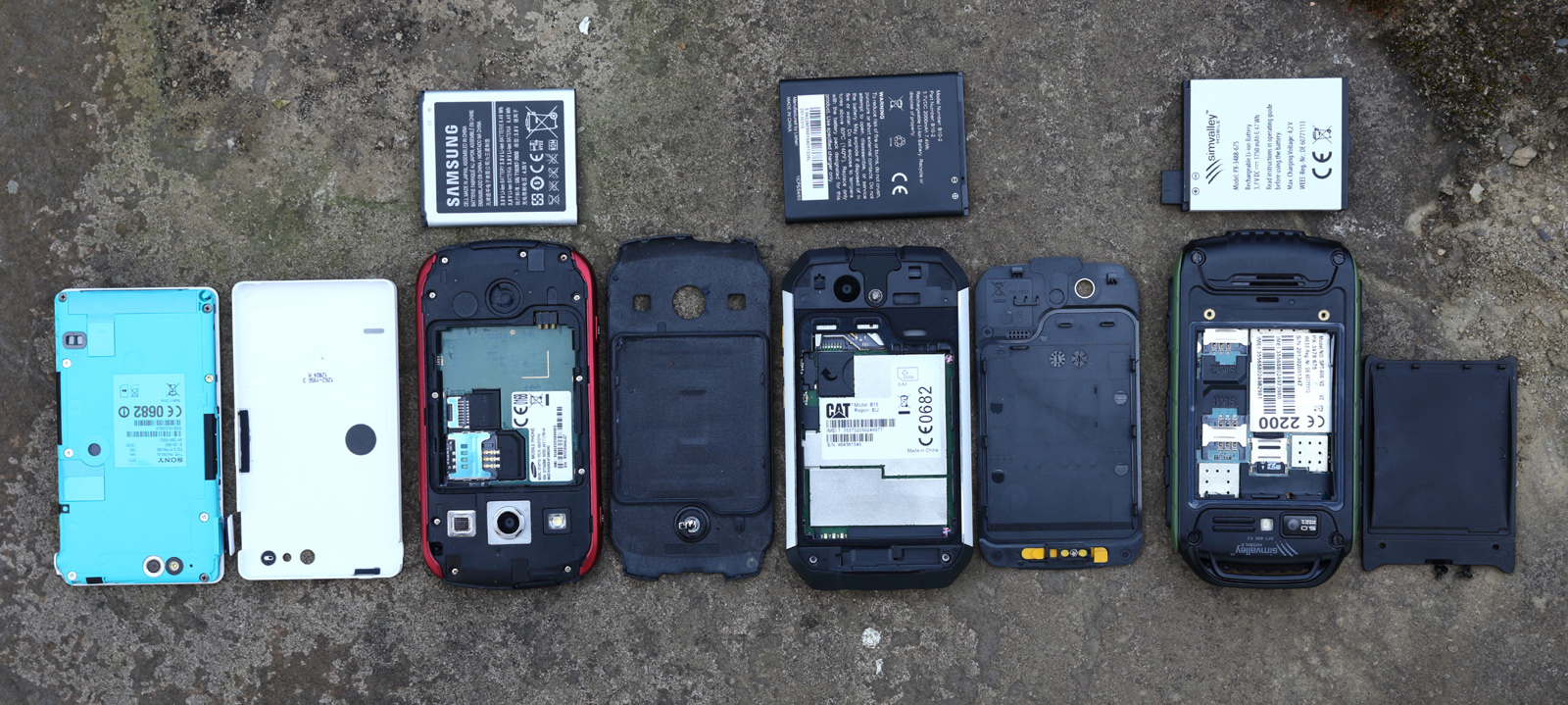 Alle getesteten Outdoor-Smartphones nutzen als Spannungsquelle Li-Ion-Akkus. Die bei reinen Outdoor-Navis praktische Nutzung von Standard-AA-Akkus oder Batterien hat im Bereich der Smartphones noch keine Anwendung gefunden. Um so wichtiger ist ein wechselbarer Akku. Diese Anforderung erfüllt nur das schlanke Sony Xperia go nicht. Möchte man hier die Laufzeit unterwegs verlängern, bleibt nur der Griff nach mobilen Lademöglichkeiten. Gegen den Akkuverschleiß helfen aber auch diese Lösungen nicht, und nach einigen hundert Ladezyklen muss der Akku teuer getauscht oder das Smartphone entsorgt werden.