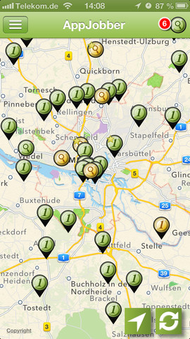 Das Prinzip von AppJobber ist im Ansatz mit dem des Gecoaching vergleichbar. Eine Karte auf dem Smartphone zeigt Jobs in der Umgebung an, zu denen es jeweils eine ausführliche Beschreibung gibt. Beispielsweise könnte eine Aufgabe lauten: „Überprüfe das Tempolimit an dieser Kreuzung“ oder aber „Fotografiere die Speisekarte des Restaurants„. Nach Erledigung des Auftrages erhält der Nutzer einige Euro auf seinem AppJobber Konto gutgeschrieben. Die Höhe der Vergütung wird vom Auftraggeber festgelegt und beträgt mindestens einem Euro, kann aber auch deutlich mehr sein, in München können App Jobber zum Beispiel fünf Euro für das Erfassen von Mietinfos zu Gewerben verdienen.