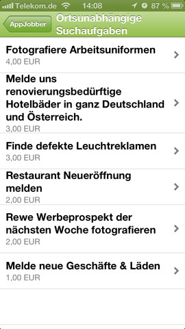 AppJobber bietet nicht nur Jobs in Deutschland, sondern auch in Österreich, der Schweiz, Italien und Finnland. So können Nutzer auch auf Reisen kleines Jobs erledigen, die dort in einigen Gebieten sogar in einer hohen Dicht zu finden sind. In Italien etwa müssen aktuell 15.000 Cafes und Restaurants fotografiert werden und in Österreich gilt es Elektro-Tankstellen zu finden und tausende Öffnungszeiten von Bäckereien und Friseuren zu erfassen.