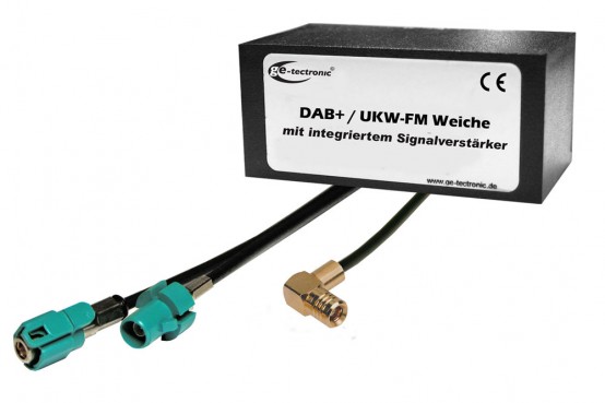 Das DAB Interface wird mit der original Autoantenne verbunden und ermöglicht dann den Anschluss eines DAB / DAB+ Radios. Eine aktive Antennenweiche splittet das Signal der üblichen UKW Autoantenne für FM / UKW und DAB / DAB+ Empfänger. Dafür muss das Frequenzband der aktiven Fahrzeug-Antenne ungefiltert zur Verfügung stehen.