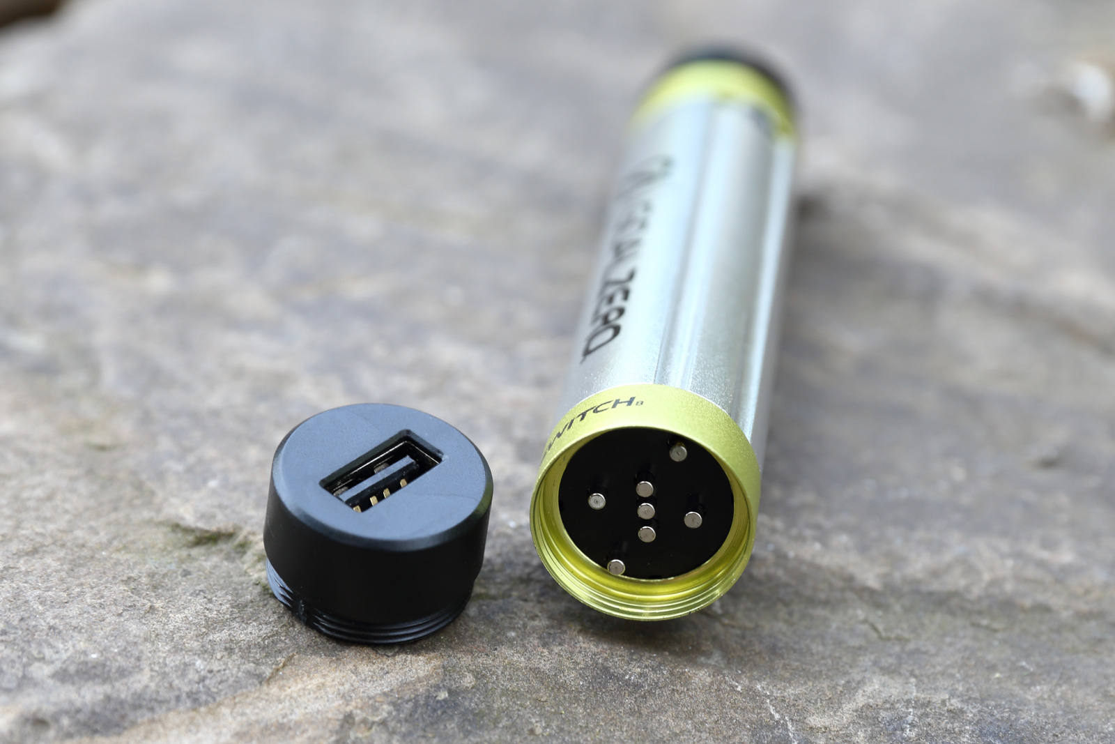 Der USB-Stecker zum Laden des Gerätes ist bereits in einem der abschraubbaren Geräteenden integriert, so dass je nach Lage der USB-Buchse kein zusätzliches Kabel nötig ist. Ein Verlängerungskabel wird aber mitgeliefert. Leider ist der USB-Stecker nicht sehr stramm, daher kann es vor allem ohne Verlängerungskabel leicht zum Abrutschen kommen. Das Switch 8 passt gut in die Tasche des Nomad 3.5 Solarpanels.