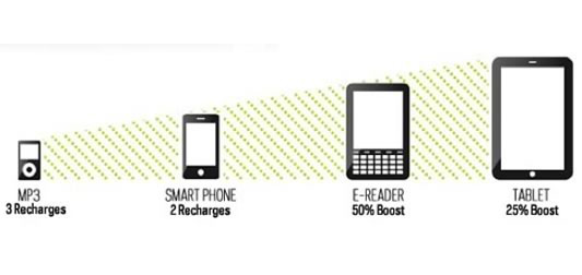 Das Guide-10-Plus-Kit mit seinem Nomad-7-Solarpanel hat einen sehr guten Wirkungsgrad und kann ein iPhone 5 bei besten Bedingungen in ca. zwei Stunden komplett laden. Bei starker Bewölkung kann auch das Nomad 7 nicht zaubern, für eine vollständige Ladung eines iPhone 5 benötigt das System einen ganzen Tag mit weit über 10 Stunden. Das Switch-8-Kit ist weit weniger leistungsfähig und benötigt ca. 2,5mal mehr Zeit als das Guide-10-Plus-Kit. Dank monokristalliner Solarzellen liegt auch das Switch-8-Kit im Bezug auf den Gesamtwirkungsgrad deutlich über Mitbewerbern, die auf flexible Dünnschichtmodule setzen.