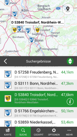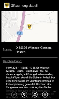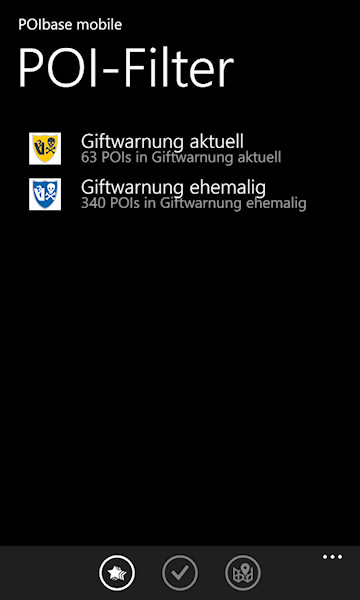 Auch für Smartphones gibt es die Giftwarner-POIs als direkten Download. Windows Phones und Android-Geräte können sich mit der App POIbase mobile über den Google Play Store bzw. Microsoft Store alle Gefahrenstellen unterwegs anzeigen lassen.