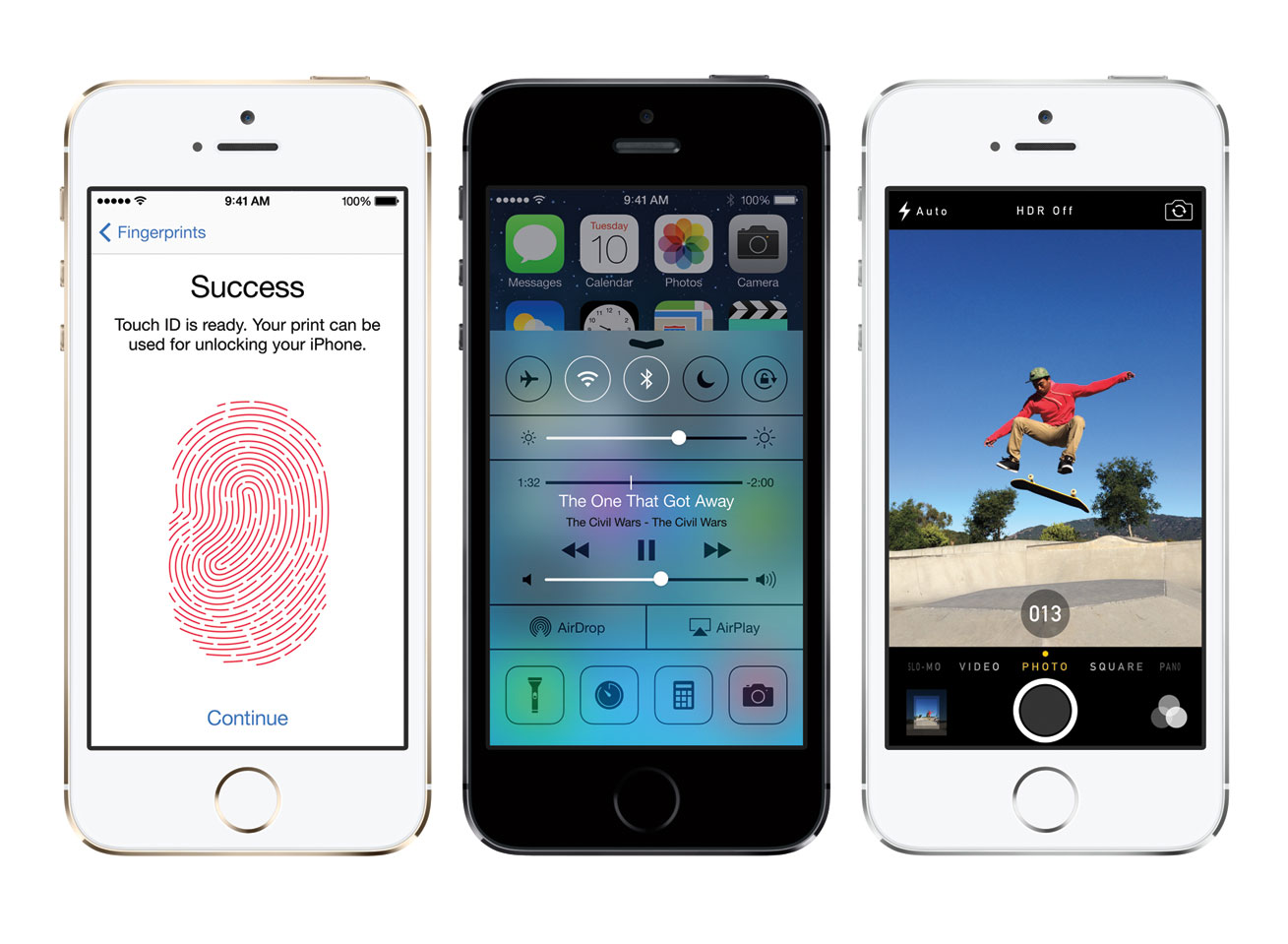 Richtig lag die Gerüchteküche auch beim neuen Home-Button mit integriertem Fingerabdrucksensor. Apple nennt das ganze Touch ID und ermöglicht damit das Entsperren des iPhones mit nur eine Berührung. Der neuen Home-Button ist aus lasergeschnittenem Saphir-Kristall gefertigt, das einen kapazitiven Berührungssensor schützt. Apple betont das die Fingerabdrücke sicher im Inneren des A7 Chips auf dem iPhone 5S gespeichert werden und diese Informationen niemals auf Apple Servern oder in der iCloud gespeichert werden. Mit Touch ID sollen sich zudem Einkäufe über den App Store, iTunes oder iBooks bestätigen lassen.