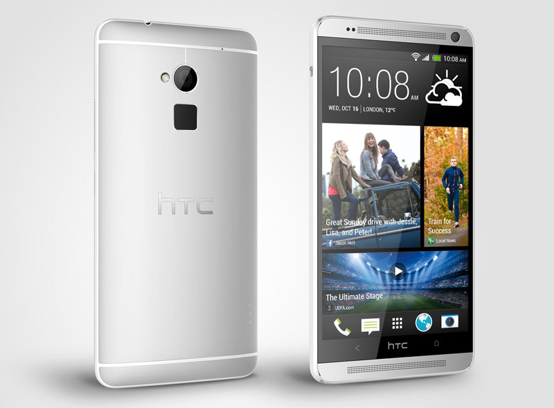 Als weiteres Highlight ist das HTC One max mit einem Fingerabdruckscanner ausgestattet. Wie beim iPhone 5S kann das Smartphone damit durch Auflegen des eigenen Fingers entsperrt werden. Außerdem können bis zu drei Funktionen mit separaten Fingerabdrücken verknüpft werden, beispielsweise um mit dem Zeigefinger die Navigationssoftware zu starten. Der Sensor ist auf der Rückseite des Gerätes zu finden. Das HTC One max wiegt stolze 217 Gramm, etwas mehr dürfte es durch das optional erhältliche HTC Power Flip Case werden, welches das Smartphone nicht nur schützt, sondern auch für 1.150 mAh zusätzliche Akkuleistung sorgt. Die Kapazität des im HTC One max verbauten Akkus beträgt 3.300 mAh.