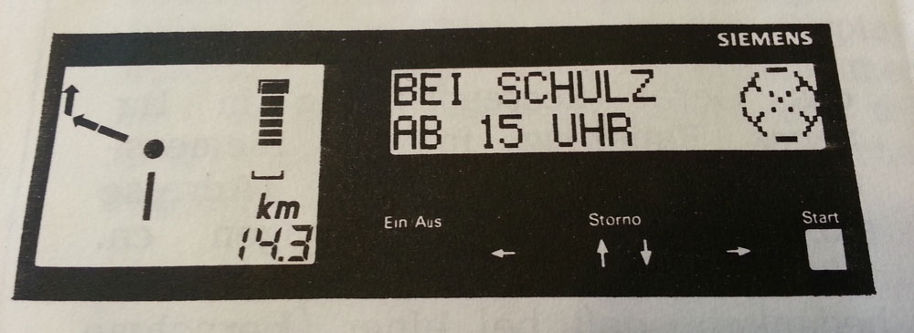 GPS war damals noch nicht möglich. Daher war für die Anfänge der Navigation vielmehr Aufwand nötig. Ein Kompass befand sich unter dem Autodach, der jedes Mal, wenn ich Berlin verlassen habe, auf einem Parkplatz durch Kreisfahrten kalibriert werden musste. Informationen zur Navigation und zur aktuellen Straßenlage wurde über Infrarotsignale an den Ampelanlagen zum Fahrzeug übertragen. Die Navigation erfolgte mit einer Pfeildarstellung auf einem schwarz-weiß Display in Höhe des Handschuhfaches.