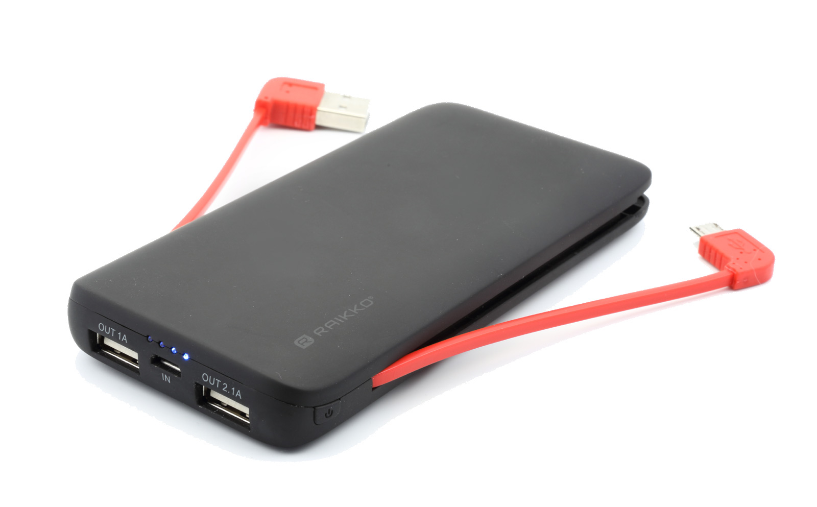 Der Raikko 6000 Akkupack verfügt über zwei im Gehäuse versenkte Ladekabel. Das eine Kabel hat einen USB-Stecker und dient zum Laden des Akkupacks, das andere Kabel mit MircoUSB-Stecker kann direkt zum Laden anderer Geräte verwendet werden. Die Energiedichte von 13,3 Wattstunden pro 100 Gramm leidet nicht wesentlich unter dem zusätzlichen Gewicht der Kabel. Alle drei Ausgänge teilen sich die maximale Leistung von 11,1 Watt, was jedoch für das zeitgleiche Laden zweier Smartphones problemlos möglich macht. Ausführlicher Testbericht…