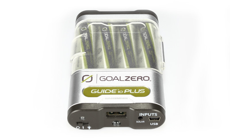 Der GoalZero Guide 10 kann mit 4 AA- oder 4 AAA-Zellen betrieben werden. Die Leistung liegt mit 7,5 Watt recht hoch und somit lassen sich auch Tablets problemlos laden. Die Kapazität ist abhängig von den verwendeten Akkus. Die mitgelieferten Akkus reichen aus, um auch größere Smartphones vollständig zu laden. Die Akkus im Guide 10 können über den Mini-USB-Eingang oder einen Solarpanel-Eingang geladen werden. Das Gerät ist sehr hochwertig verarbeitet und verfügt über eine kleine LED-Notbeleuchtung. Die Energiedichte kann nicht mit Li-Ion-Akkuladern mithalten, dafür ist das Guide 10 flexibler einsetzbar … zum Testbericht
