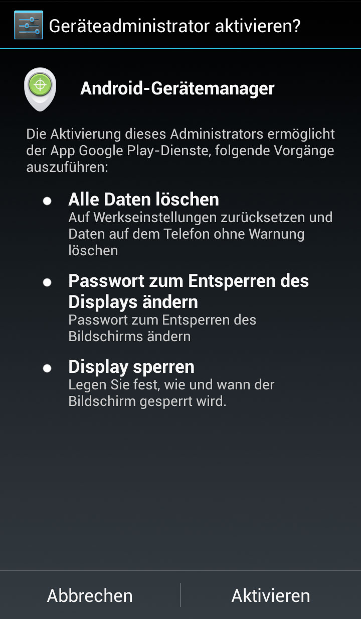 Da man allerdings unter Android, auch aus der Ferne Apps auf ein Gerät per Push installieren kann, wie z.B. AndroidLost, ist das kein wirkliches Problem.
