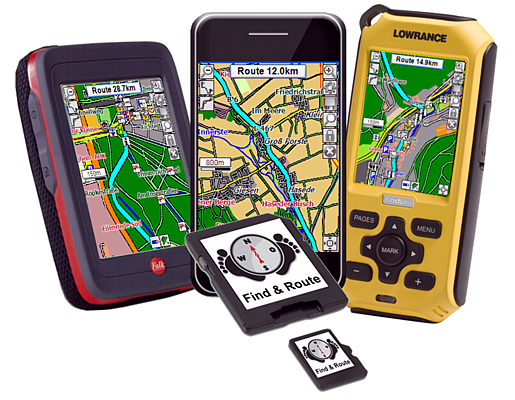 „Find Route“ ermöglicht Outdoor-Navigation auf allen Straßen, Wegen und Pfaden und ist zur Zeit auf folgenden GPS-Geräten einsetzbar: Lowrance Out Back, Lowrance Safari, Lowrance Sierra, Falk IBEX, Falk LUX, VDO GP7, MyNav 500, MyNav 600 oder verschiedenen Windows-Smartphones und Pocket PCs (PDAs).