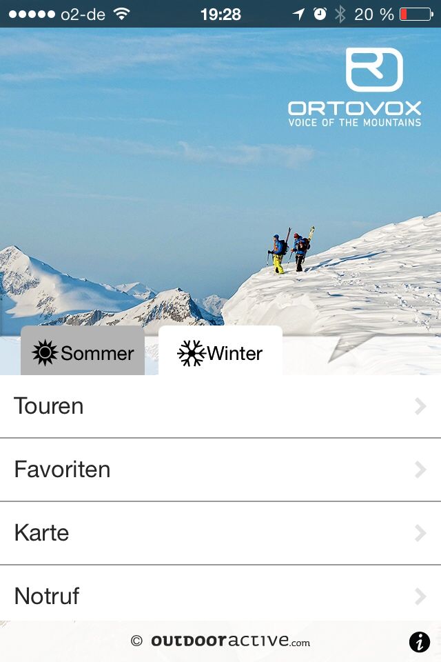 Als alter Bekannter im Wintersportbereich betritt hier ORTOVOX zusammen mit Alpstein den Bereich der Tourenapps. Neben einem „Sommerbereich“ gibt es natürlich auch den „Winterbereich“. Hier finden sich Ski- und Schneeschuhtouren sowie Freeride-Hänge. Topographische Karten, eine Notrufmöglichkeit (die man hoffentlich nie brauchen wird), Tools für Höhenmessung, Hangneigung, Kompass und Gipfelfinder sind schon von anderen Alpstein-Apps bekannt. Dazu gibt es ORTOVOX-spezifisch noch das Check Ride-Sicherheitstool und eine Gefahrenbeurteilung, welche auf der DAV-SnowCard basiert. Alles in allem also ein rundes Gesamtpaket.