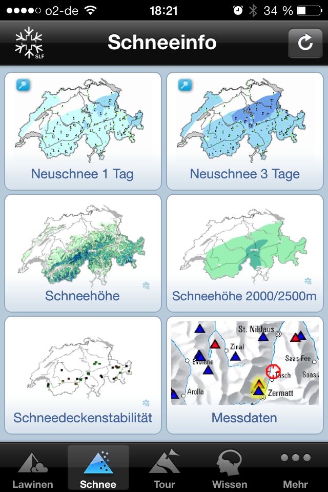 Neben dem Schnee- und Lawinenlagebericht für die Schweiz bringt diese App noch einen sehr interessanten (und auch wichtigen) Wissens-Bereich mit. Hangneigungsmesser, Analyser, Reduktionsmethode, Basiswissen (vieles interaktiv verwendbar) – das ganze geballte Know-How des SLF findet man hier kostenlos für iPhone und Android.