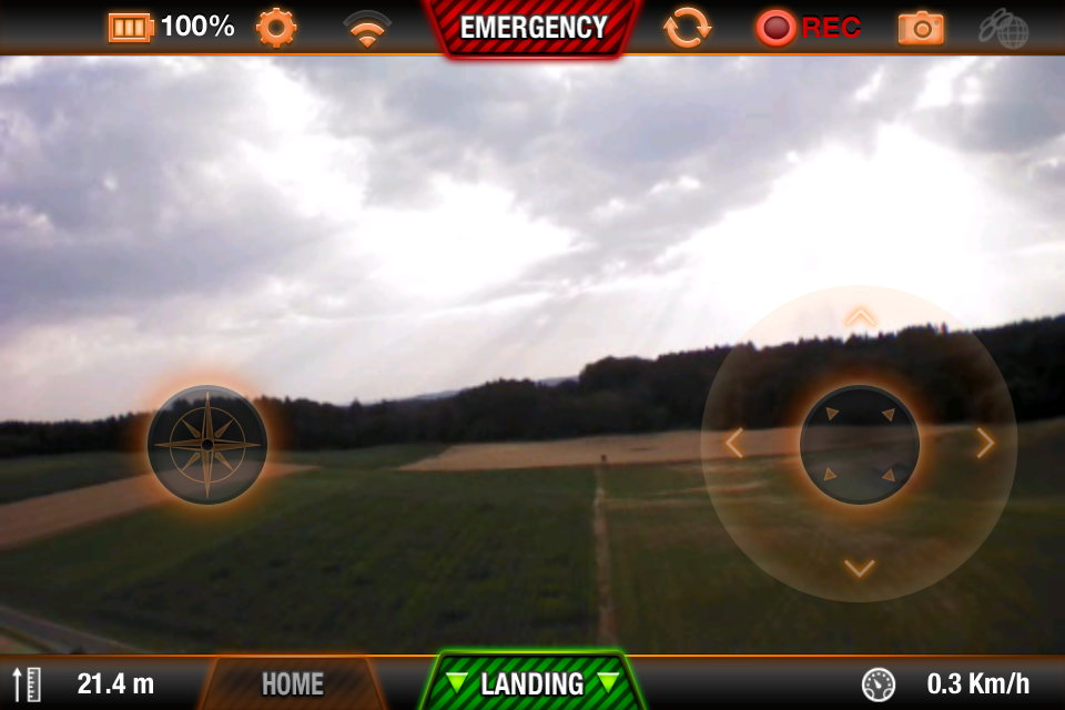 Vergeblich sucht man nach einer Fernsteuerung. Die Drohne kann ganz einfach über Smartphone + App gesteuert werden. Die offizielle App „Free Flight“ gibt’s kostenlos für iOS und Android. Für andere Systeme sind darüber hinaus zahlreiche inoffizielle Apps bzw. Programme erhältlich. Zur Erweiterung gibt es weitere Apps von Parrot – allerdings bisher nur für iOS. Als In-App-Purchase gibt es für beide Betriebssysteme den „Director Mode“, mit dem sich viele weitere Einstellungen vornehmen lassen. Die sind allerdings primär für Videofilmer interessant, denn sie dienen der gezielteren Bildführung – was gerade für Anfänger nicht so einfach ist, wenn man mit der Steuerung beschäftigt ist.