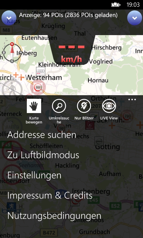 Mobile Blitzer melden kommt in der nächsten Version in einigen Wochen. Zur Zeit kann man neue POIs und Blitzer über die POIbase PC App melden. Potenzielle Blitzer bedeutet Standorte an denen oft geblitzt wird. Es wird die Blitzerdatenbank von pocketnavigation.de benutzt.