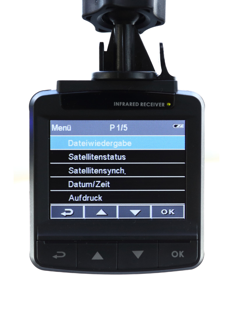 Rollei ist eine deutsche Traditionsmarke und schickt mit der Rollei DVR 110 eine gut ausgestattete Full-HD-Car-Cam ins Rennen. Die Rollei DVR 110 ist das Top-Produkt von Rollei und verfügt als einzige Dashcam im Test über eine IR-Fernbedienung. Eine Fernbedienung macht vor allem deshalb Sinn, weil eine Dashcam nach Möglichkeit unauffällig, aber auch schwer zugänglich, hinter dem Rückspiegel angebracht wird. Die Rollei DVR 110 lässt sich aufgrund ihrer großen Tasten, des großen Displays und eines logischen Menüaufbaus einfach und intuitiv bedienen.