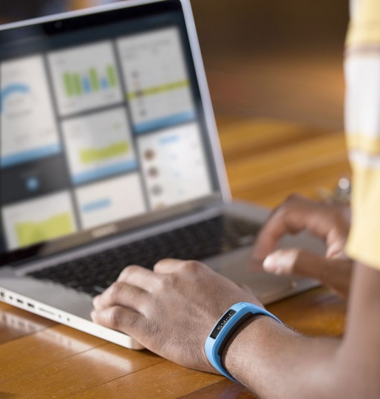 Das Armband zeichnet alle Aktivitäten des Alltags auf und informiert über die zurückgelegten Schritte, Distanz und die verbrauchten Kalorien. Errechnet werden diese Werte durch einen 3D-Beschleunigungssensor, der in das Armband integriert ist. Ein roter Aktivitätsbalken zeigt dem Nutzer, ob er sich heute schon ausreichend bewegt hat. Ist das Bewegungs-Soll erfüllt, gratuliert das Armband zum erzielten Erfolg. Das soll helfen, den inneren Schweinehund zu überwinden und täglich aktiver zu werden. Wird das Fitness-Armband auch in der Nacht getragen, beobachtet es das Schlafverhalten des Trägers.