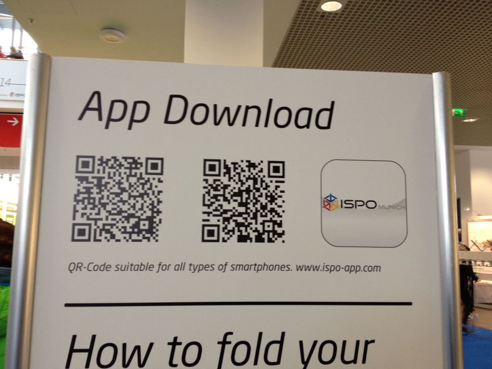 Alles in allem kann man sagen, dass es auf der ISPO mittlerweile auch einiges in Sachen Smartphones, Gadgets, Equipement und mobiler Energieversorgung zu sehen gibt. Bei vielen Herstellern findet man unübersehbar auch QR-Codes an den Ständen und Ausstellungssäulen mit denen man sich gleich die aktuellen Infos auf sein Smartphone laden kann.