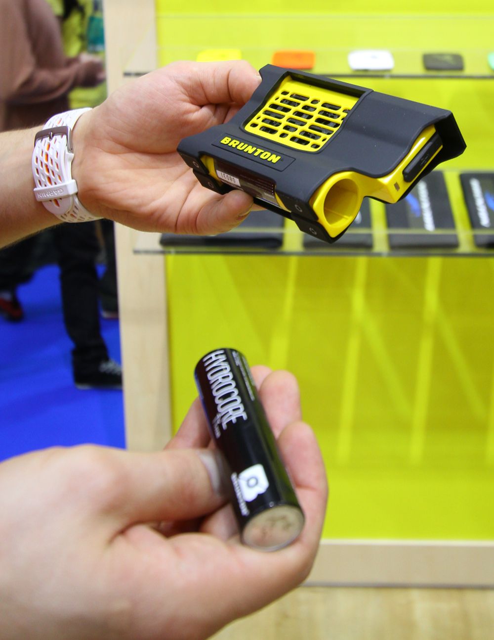 Der erste Stopp wurde bei BRUNTON eingelegt. Von ganz klein bis ganz gross finden sich Energiespender fast jeder Art bei dem US-amerikanischen Hersteller. Neben den mittlerweile weit verbreiteten Solarpanels wird zum ersten Mal bei Brunton eine Wasserstoffzelle, der „Hydrogen Reactor“ gezeigt – ähnlich dem hier getesten Hydrostatik Hydrofill.