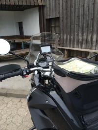 Jetzt aber zum neuen Rider der Version 2013. Mit großer Vorfreude habe ich das Gerät ausgepackt und hatte einen sehr guten ersten Eindruck. Die mitgelieferte RAM-Halterung ist mit bereits von den andern Geräten bekannt und ausreichend für alle Motorräder. Ich persönlich fahre an meiner GS einen zusätzlichen Bügel mit passender Halterung für das BMW-Navi (eigentlich ja ein Zumo 660), so dass ich alle Modelle mit RAM-Halterung direkt auf den Adapter von BMW montieren kann. Auch zur Haltbarkeit des Akkus kann ich nichts sagen, da ich über einen Stromanschluss verfüge.