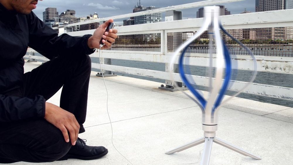 Unabhängig von jedem Stromnetz soll der „Revolver“ (der Name resultiert aus dem vier-blättrigen Rotor) bis zu 35 Watt liefern. Genug um Laptops, Smartphones oder andere elektronische Kleingeräte mit Strom zu versorgen.