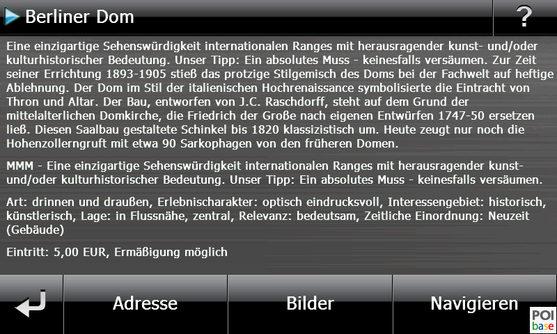 Wer in unbekannten Städten unterwegs ist und dort nach Restaurants, Sehenswürdigkeiten oder Übernachtungsmöglichkeiten sucht, wird vielerorts mit dem vorinstallierten Travel Guide fündig. Der elektronische Reiseführer informiert über Öffnungszeiten, Adresse, Kontaktdaten sowie Preise der jeweiligen Lokalität und hält für viele Orte ausführliche Beschreibungen samt Bildern bereit. Natürlich kann direkt aus dem Travel Guide auch eine Navigation gestartet werden.