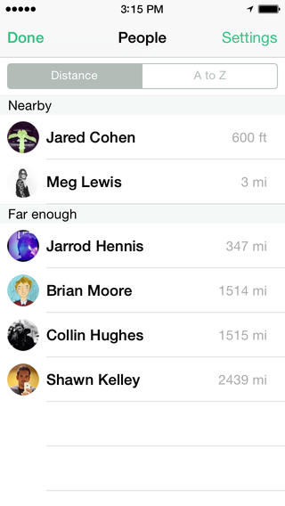 Die App ist simpel gestaltet und bietet zusätzlich eine Funktion um sich vor einzelnen oder allen Kontakten warnen zu lassen. Bewegt man sich dann auf die jeweilige Person zu, schlägt die App Alarm. Wer wissen möchte, welcher Bekannte sich gerade in der näheren Umgebung befindet um spontan ein Treffen zu arrangieren, kann die App natürlich auch für den gegenteiligen Zweck verwenden.