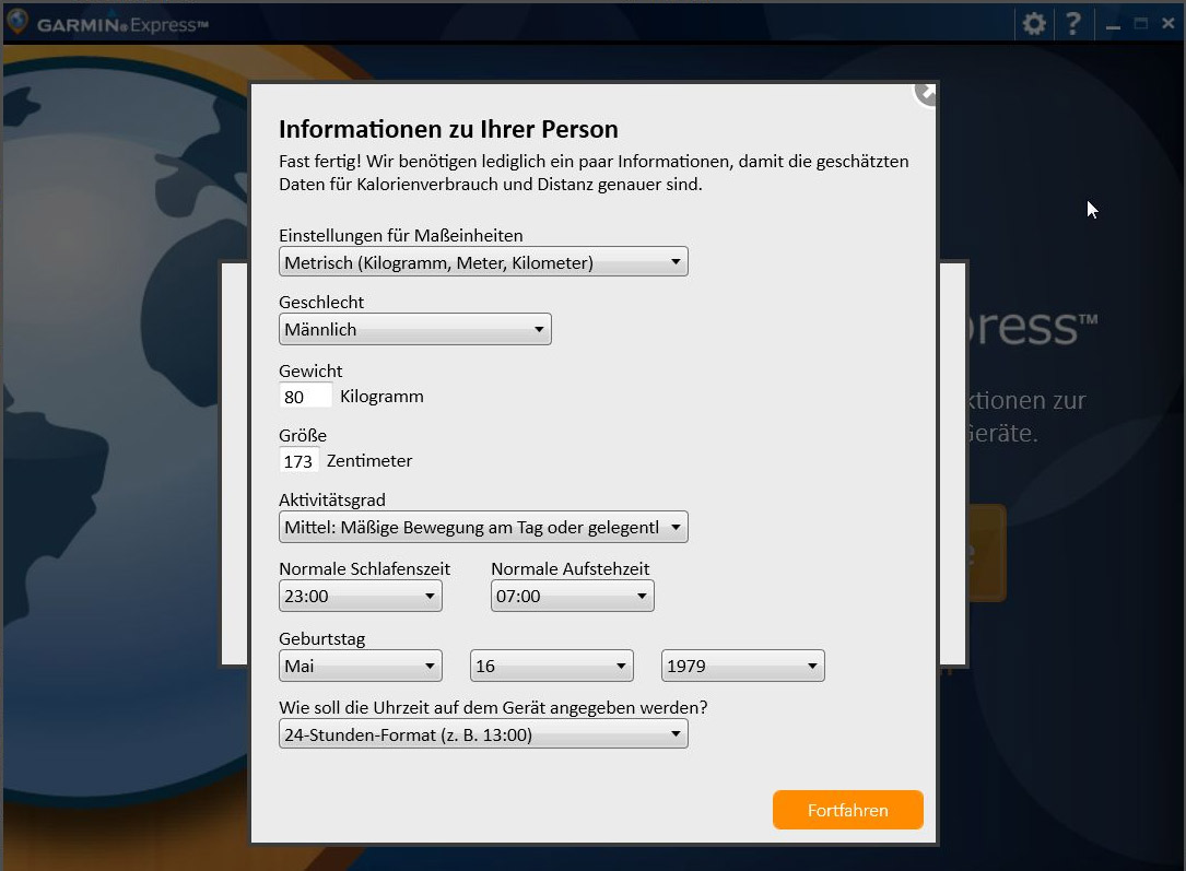 Datenübertragung via Garmin Express an die Onlineauswertung Garmin Connect: