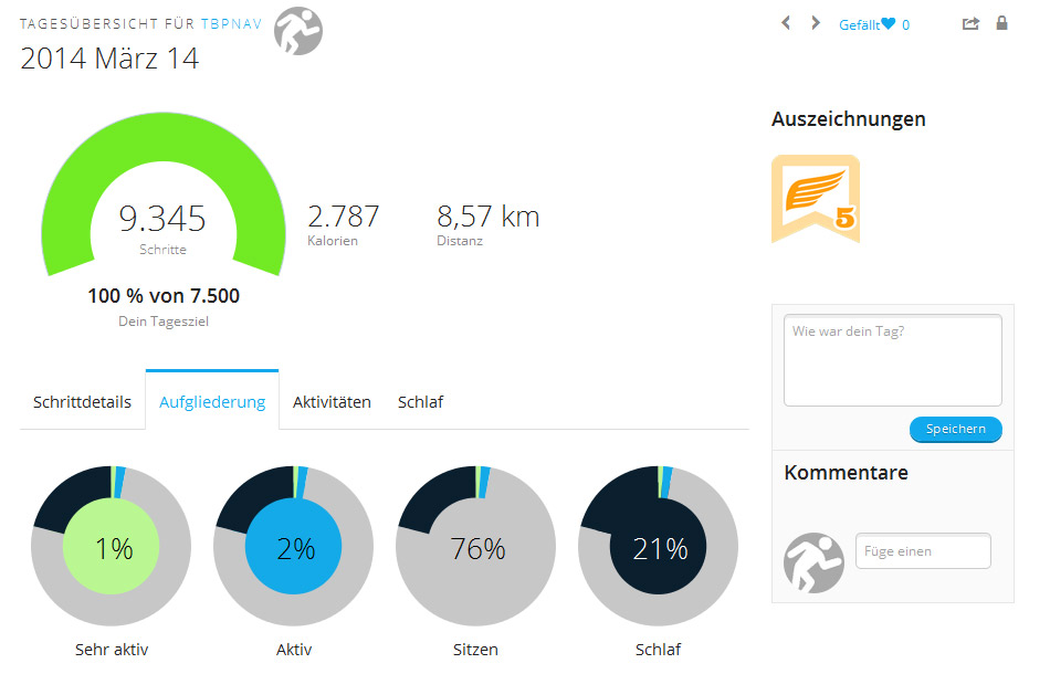 Nicht ganz überzeugen konnte uns die Erfassung von Aktivitäten, die nicht direkt mit Gehen/Laufen assoziiert sind. So gibt es durchaus intensive Aktivitäten (z.B. Fensterputzen, Bügeln, Holzhacken, …) die nicht oder nicht ausreichend als Aktivität erkannt und gewertet werden. Auch die automatische Trennung von Aktivitäten war nicht immer befriedigend.