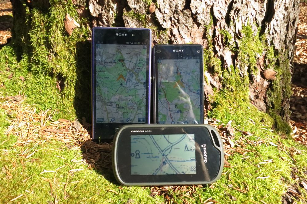Mit einem reinrassigen GPS-Handgerät können auch unsere beiden Testkandidaten bei starkem Sonnenschein nicht mithalten – wie man auf dem nachfolgenden Bild unschwer sehen kann…