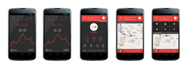 Mit einer dazugehörigen Smartphone App, die es für Android und iOS geben soll, lassen sich Ziele auch per Spracheingabe bestimmen. Die App berechnet dann eine geeignete Route und leitet den Nutzer durch Vibrationen, die je nach Richtung im linken oder rechten Schuh abgegeben werden, ans Ziel. Dabei ist es unabhängig davon, ob der Träger zu Fuß, mit dem Fahrrad oder dem Auto unterwegs ist.