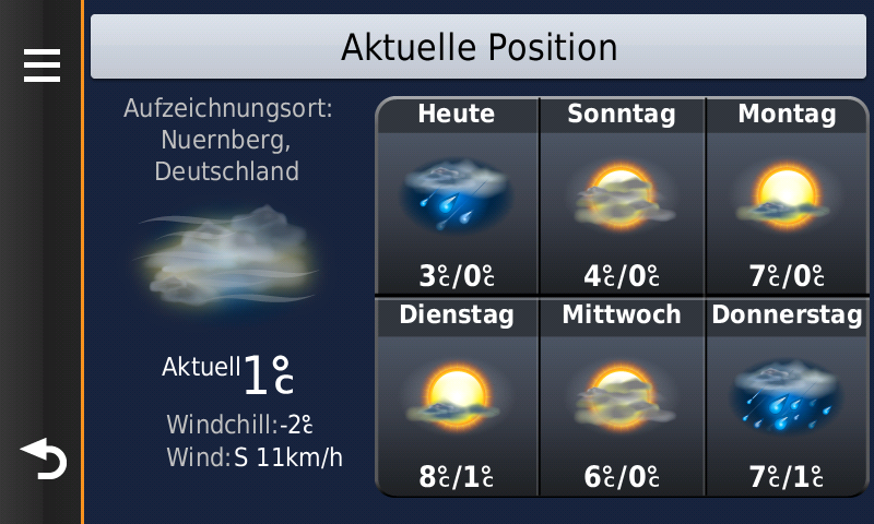 Die übrigen Zusatzdienste über Smartphone Link wie z. B. Parken aktuell, Radar-Info sowie erweiterte Wetterfunktionen müssen einmalig erworben werden und stehen danach für die gesamte Nutzungsdauer des Gerätes zur Verfügung. Wir haben die problemlose Zusammenarbeit des nüvi 3597 mit Smartphone Link auch dank der Option „POI in der Nähe suchen“ zu schätzen gelernt. Die Funktion steht auf dem Smartphone in der App zur Verfügung und ermöglicht eine Freitextsuche, deren Ergebnis an das Gerät selbst übermittelt werden kann. Die Navigation startet dann durch Antippen des „Los“-Buttons.