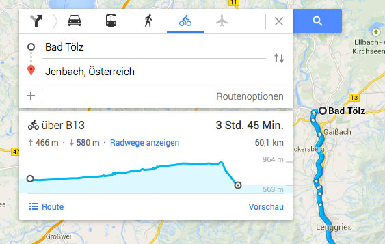 Leider integriert Google die Höhendaten bislang noch nicht in den KML-Export. Wäre dies der Fall, könnte das Höhenprofil einer Strecke auch direkt auf einem GPS-Gerät während der Radtour betrachtet werden. Wie Routen, auch mit mehreren Zwischenzielen, für die nächste Tour mit dem Fahrrad, Motorrad oder zu Fuß mit Google Maps erstellt und anschließend exportiert werden können, haben wir hier zusammengefasst.