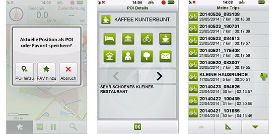 Tourenvorschläge aus dem Internet können nun besser verarbeitet werden. Diese Tourenvorschläge werden in der Regel als GPX-Dateien heruntergeladen. Das Teasi liest nun auch Dateien, die mehrere Strecken und Wegpunkte enthalten (um Beispiel den Hauptweg und einige Zuwege zu den einzelnen Bahnhöfen an einer Strecke). In dieser Art stellen zahlreiche bekannte Verlage (Rother, Michael Müller etc.) ihre Streckenempfehlungen bereit. Einfach während einer Aufnahme *+ (unten links) drücken und „POI hinzu“ wählen.