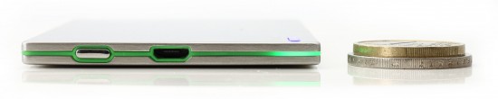 Damit ist der Akku sicherlich einer der flachsten Akkus auf dem Markt und voll Portemonnaie tauglich! Das bereits recht dünne iPhone 5 wirkt mit seinen 7,6 mm neben diesem Akku bereits als Backstein!