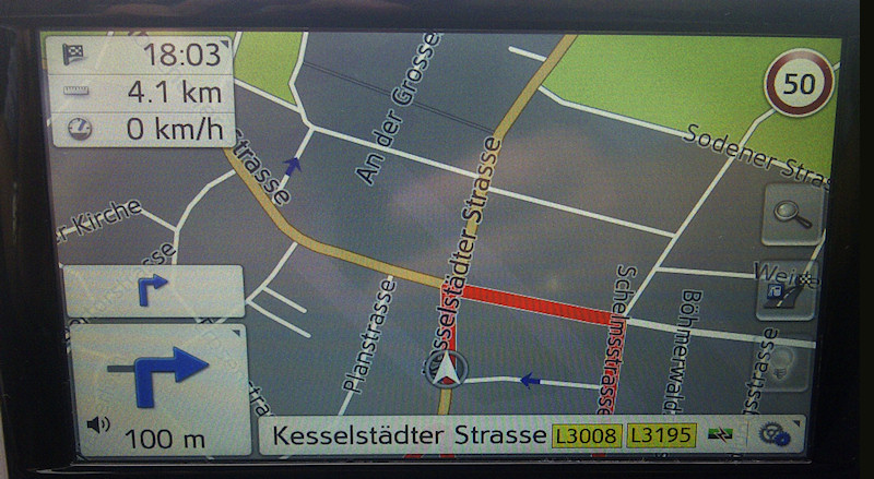 Diese Fehlortungen könnten in unbekanntem Städten mit dichter Bebauung dazu führen, dass sich das Navi in der falschen Straße wähnt und die Anweisungen somit nicht mehr passen. Zugegebenermaßen konnte ich derartiges nicht beobachten, ich war aber leider auch nicht in einer Großstadt. Kurz: Bei der Genauigkeit der Ortsbestimmung scheint es noch deutliches Verbesserungspotenzial zu geben.