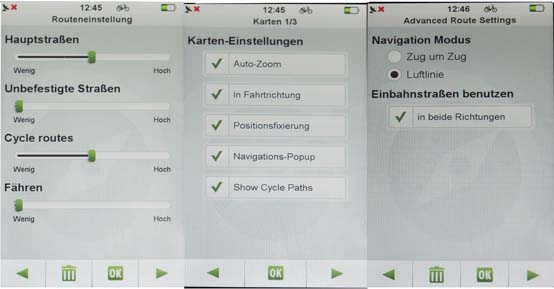 Die Kartendarstellung kann ebenfalls weiter modifiziert werden, zum Beispiel durch das Ein- oder Ausblenden von Radrouten.