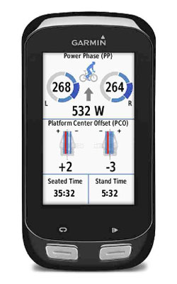 Unter Cycling Dynamics fasst Garmin die drei Funktionen „Stehend/Sitzende Position“, „Power Phase“ und „Platform Center Offset“ zusammen, die Aufschluss darüber geben sollen, wie die Kraft beim Radfahren aufgebracht wird.