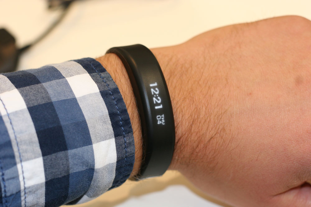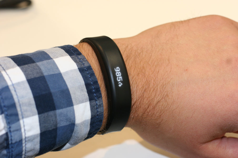 Verglichen mit dem vivofit macht das vivosmart einen wesentlich eleganteren Eindruck. Das OLED-Touchdisplay ist direkt in das Armband integriert und ist im ausgeschalteten Zustand nicht zu sehen. Erste wenn leicht mit dem Finger doppelt auf das Armband geklopft wird, aktiviert sich die Hintergrundbeleuchtung und die Informationen können abgelesen werden. Nach kurzer Nichtbenutzung schaltet sich das Display automatisch wieder aus. Der Wechsel durch die einzelnen Menüs erfolgt durch einen Wisch über den Bildschirm.