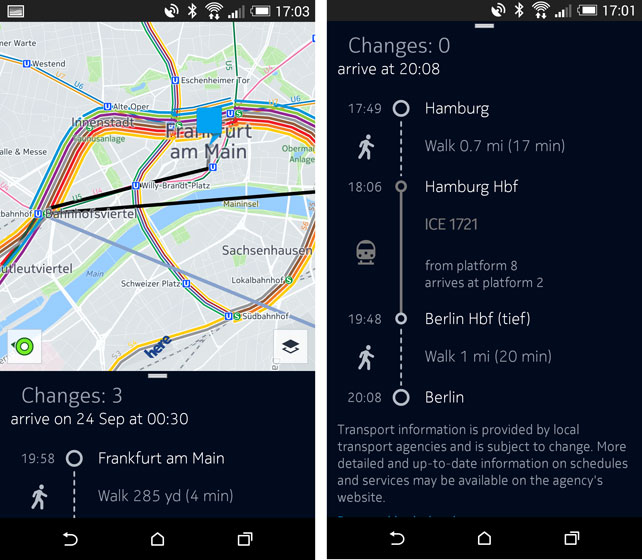 Zunächst ist die Routen- und Reiseplanung innerhalb Deutschlands mit den öffentlichen Verkehrsmitteln der Deutschen Bahn über die Windows Phone Apps HERE MAPS und HERE Transit sowie die Online-Plattform beta.here.com verfügbar. In Kürze soll auch ein Update der HERE (beta) für Samsung Galaxy Smartphones folgen.