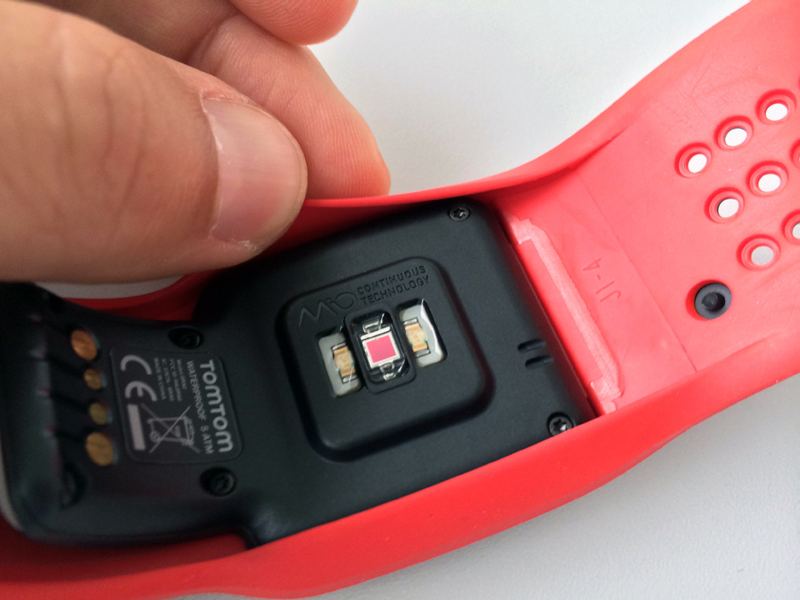 Die TomTom Runner Cardio misst die Herzfrequenz mit einem optischen Sensor, der von Mio entwickelt wurde. Die Pulsmessung erfolgt direkt am Unterarm. Auf der Uhren-Rückseite sind zwei starke LEDs und ein präziser Sensor eingebaut. Mit dieser Messanordnung wird der pulsierende Blutstrom in den Venen detektiert und als Pulsfrequenz ausgegeben.