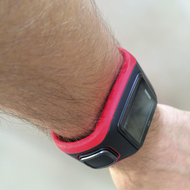 Damit die Pulsmessung funktioniert, muss die Unterseite der TomTom Runner Cardio direkt auf der Haut aufliegen und während der Messung nicht verrutschen. Nach dem Starten dauert es ein paar Sekunden, bis die Pulsmessung beginnt. Falls man die Uhr im Alltag trägt, kann man auch mal zwischendurch (z.B. beim Treppenlaufen, nach einem Disput mit einem Kollegen) den Puls verfolgen. Ähnlich wie der GPS-Sensor verbraucht die Pulsmessung relativ viel Strom und sollte deshalb nicht über längere Zeit aktiviert bleiben. Die Genauigkeit der Pulsmessung ist ebenso gut wie mit einem Brustgurt. Es kann vorkommen, dass zu Beginn des Trainings fehlerhafte Werte angezeigt werden. Manchmal hilft es, wenn man die Uhr etwas in Richtung Ellbogen verschiebt. Da der Unterarm gegen den Ellbogen dicker wird hat dies zur Folge, dass die TomTom Runner Cardio nach dem Verschieben etwas besser sitzt. Bei richtigem Tragen ist der Komfort trotzdem noch gut. Die Uhr kann deshalb auch zum Wettkampf ohne Einschränkungen getragen werden.