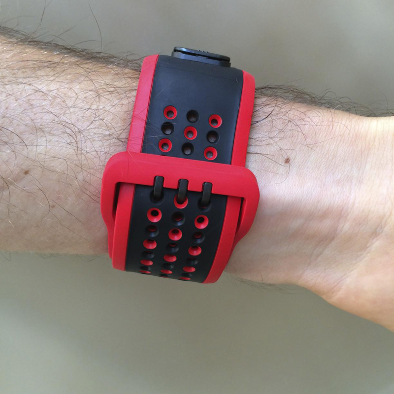 Aufgrund des relativ breiten Armbandes ist der Komfort etwas eingeschränkt. Während des Laufens stört dies kaum, wer die Uhr aber auch im Alltag tragen möchte, wird feststellen, dass durch das breite Armband die Atmungsaktivität der Haut reduziert wird. Das relativ dicke Armband empfanden wir beim Tragen unter Hemden als besonders störend.